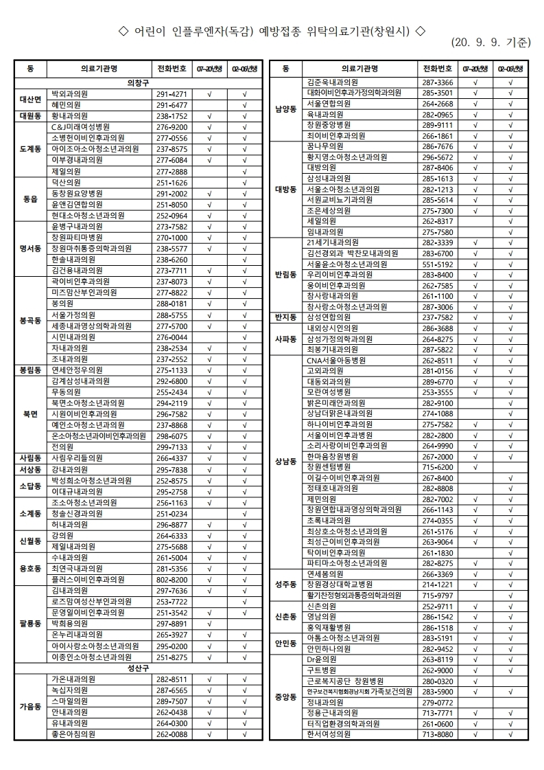 인플루엔자(독감) 무료 예방접종 안내