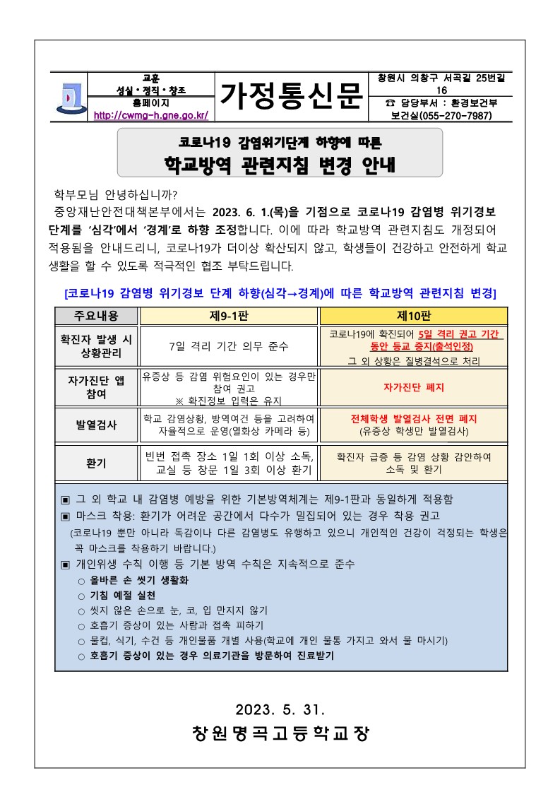학교방역지침 변경사항 안내(6.1.~)