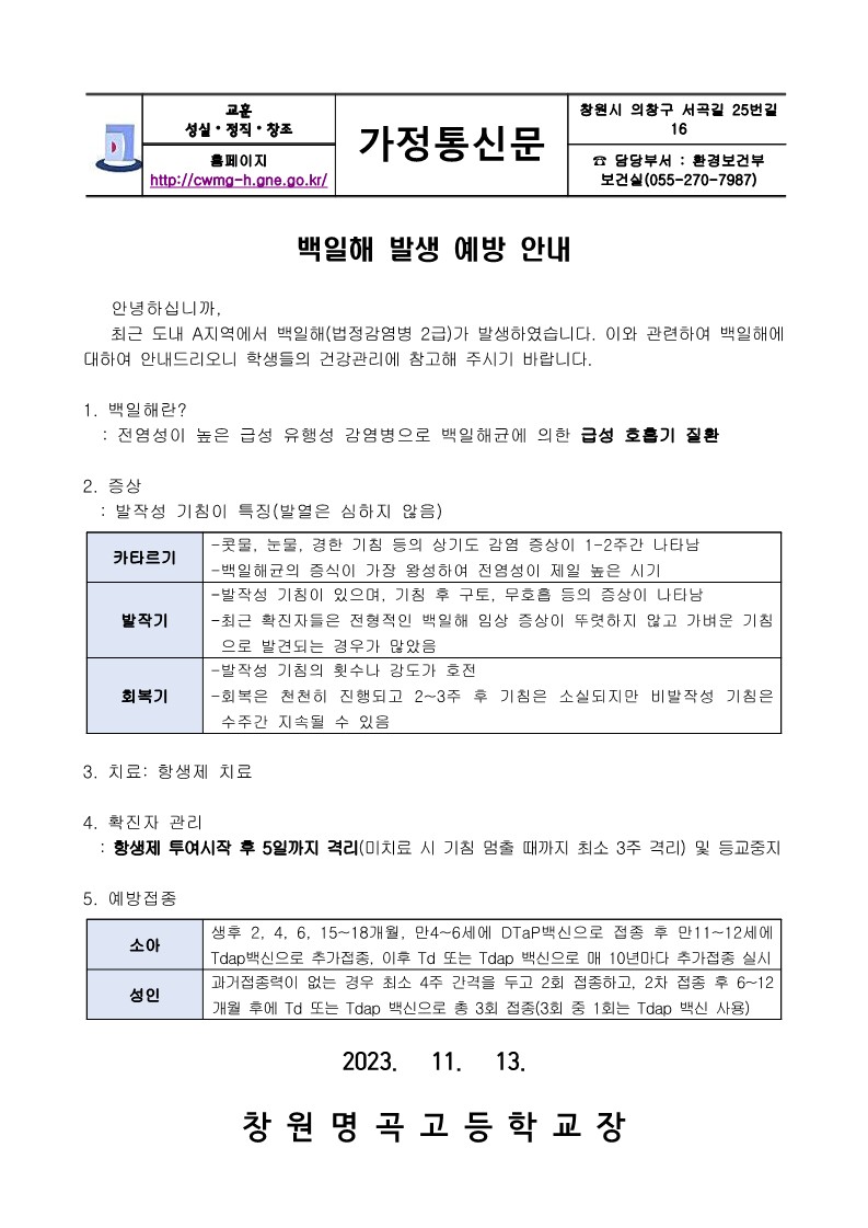 백일해 발생 예방 안내 가정통신.hwp