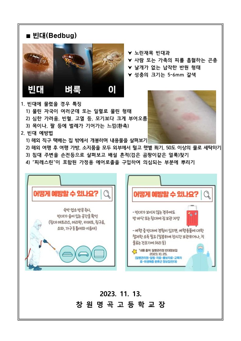 독감 및 빈대 물림 예방 가정통신.hwp